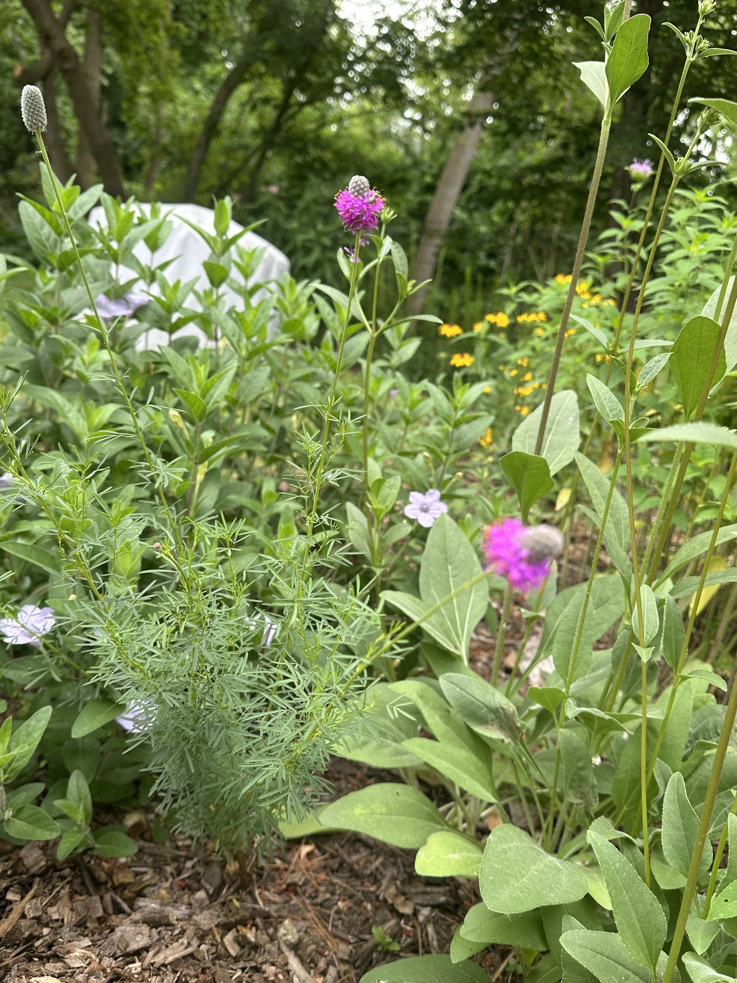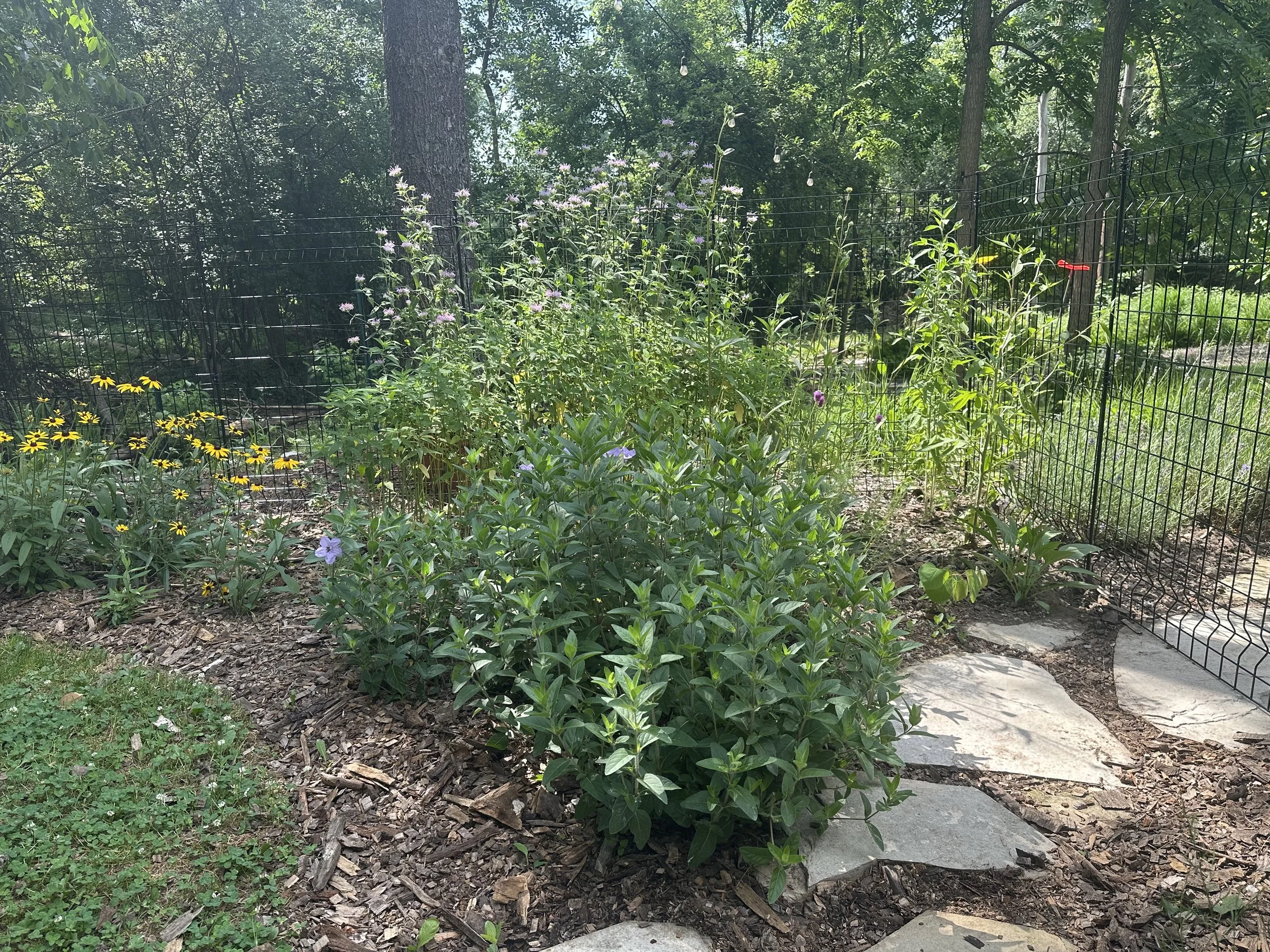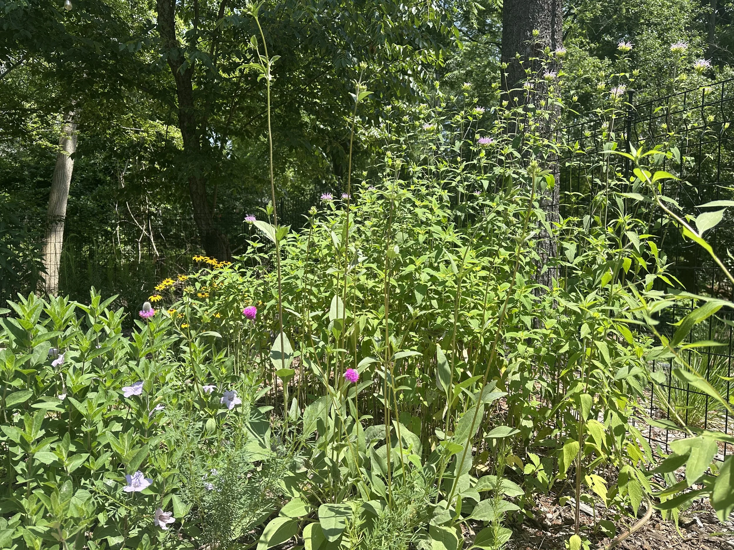 One of several Ferns and Fireflies demonstration gardens, this one shows an example of a compact border that provides support to pollinators with mid-summer blooms.